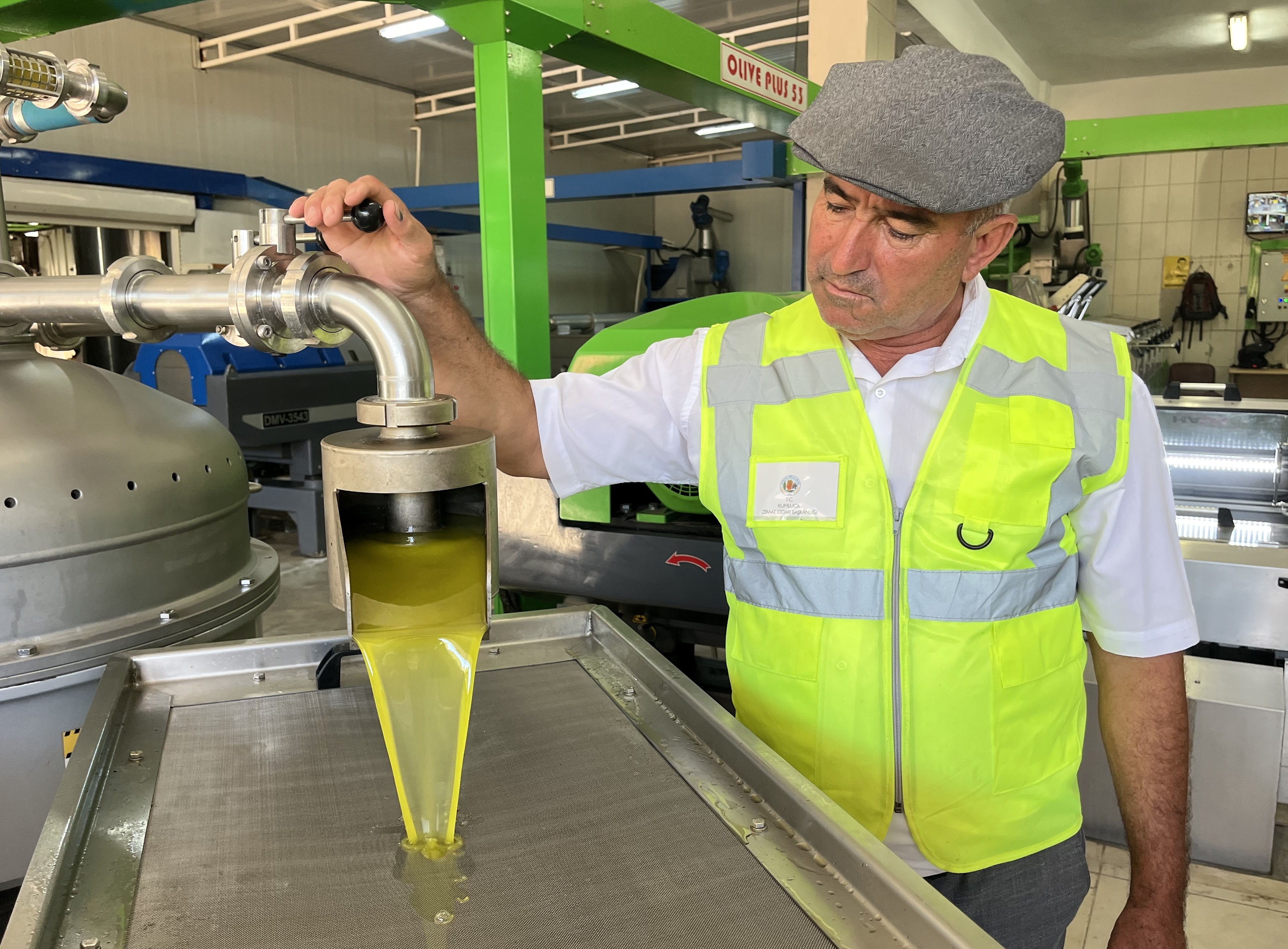 Konuşmanın ardından çiftçiler getirdikleri zeytinleri, yağa dönüştürmek için fabrikaya boşalttı.