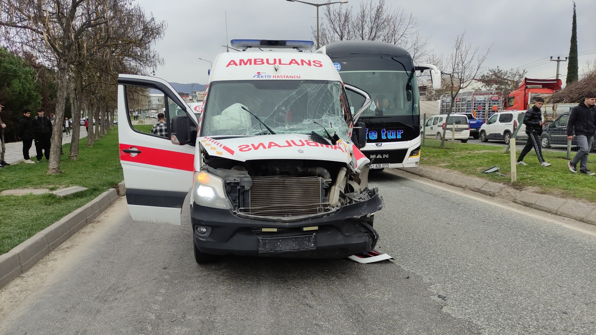 Kaza, bugün saat 14.00 sıralarında Yeniköy Mahallesi'nde meydana geldi. Yalova'dan Bursa'ya hasta taşıyan özel bir sağlık kuruluşuna ait ambulans, Fatih B. (34) idaresindeki araçla, ilçe girişinde önünde seyir halindeki hafriyat kamyonuna çarptı. Kazada ambulans sürücüsü Fatih B. ile sağlık görevlisi Şevval A. (21) hafif şekilde yaralandı.