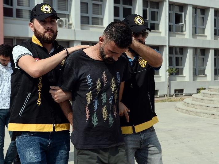 Emniyetteki işlemlerinin ardından sevk edildikleri adliyede mahkemeye çıkarılan şüphelilerden Yılmaz B. ile Tolhan Ç. tutuklandı, Sinan M. ise adli kontrol şartıyla serbest bırakıldı. (DHA)