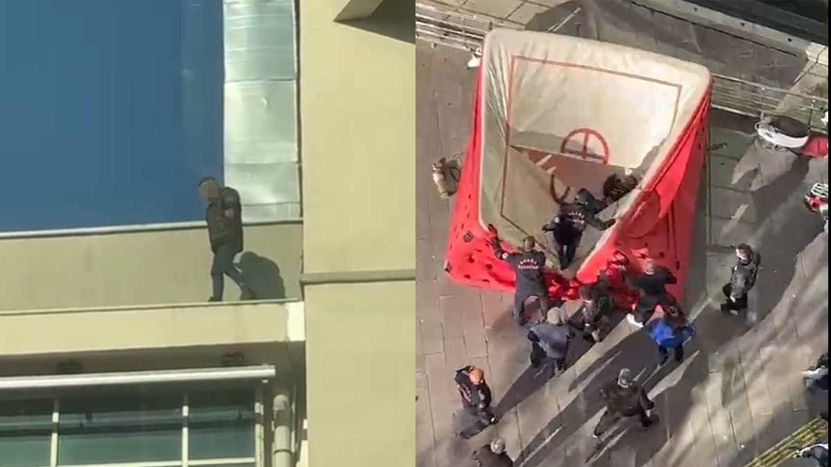 Hastane güvenlik görevlileri tarafından ikna edilmeye çalışılan genç kendisini aşağıya bıraktı. Gencin üzerine düştüğü hava yastığı patladı ve şahıs ağır yaralandı. Hastane görevlileri tarafından ilk müdahalesi yapılan kişi acil servisine kaldırılarak tedavi altına alındı.