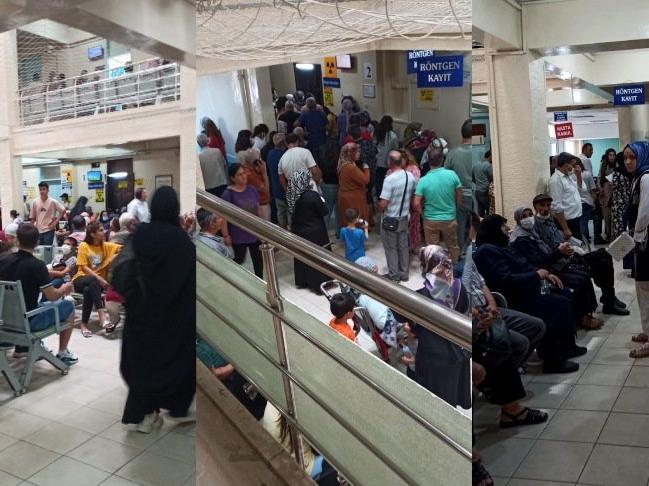 Covid-19 tedbirlerinin hiçe sayıldığı, az sayıda kişinin maske taktığı hastanedeki görüntüler tepkilere neden oldu. Vatandaşlar, “Hastane, ilaç kuyruklarını bitirdiklerini söyleyenler gelip halimizi görsün” diye tepki gösterdi.