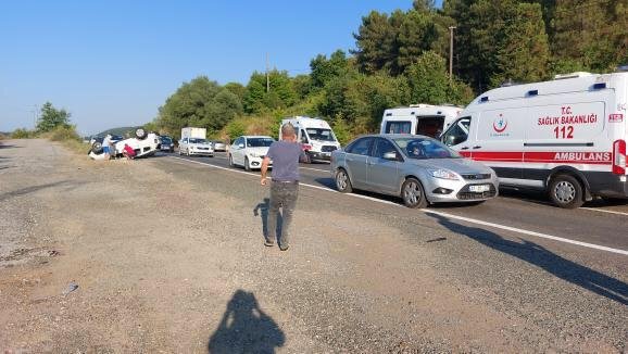Kaza yapan araçlara çarpmamak için sürücüsünün ani manevra yaptığı 34 EMA 679 plakalı cip ise yoldan çıkarak takla attı. Çevredeki vatandaşlar yaralıların yardımına koşarken durumu sağlık ekiplerine bildirildi.