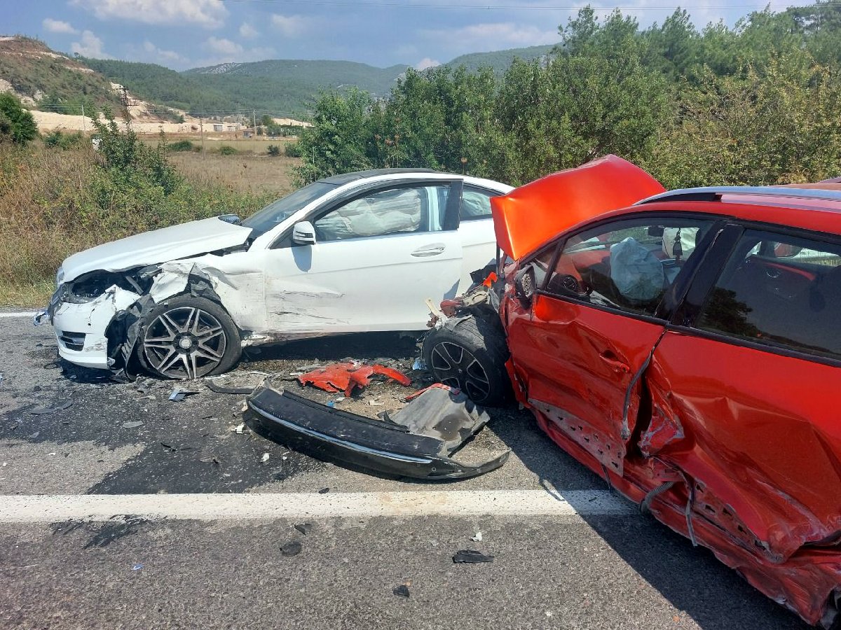 Kazada aynı anda karşı istikametten gelen iki araç da çarpışan otomobillere çarpınca kaza yeri savaş alanına döndü.