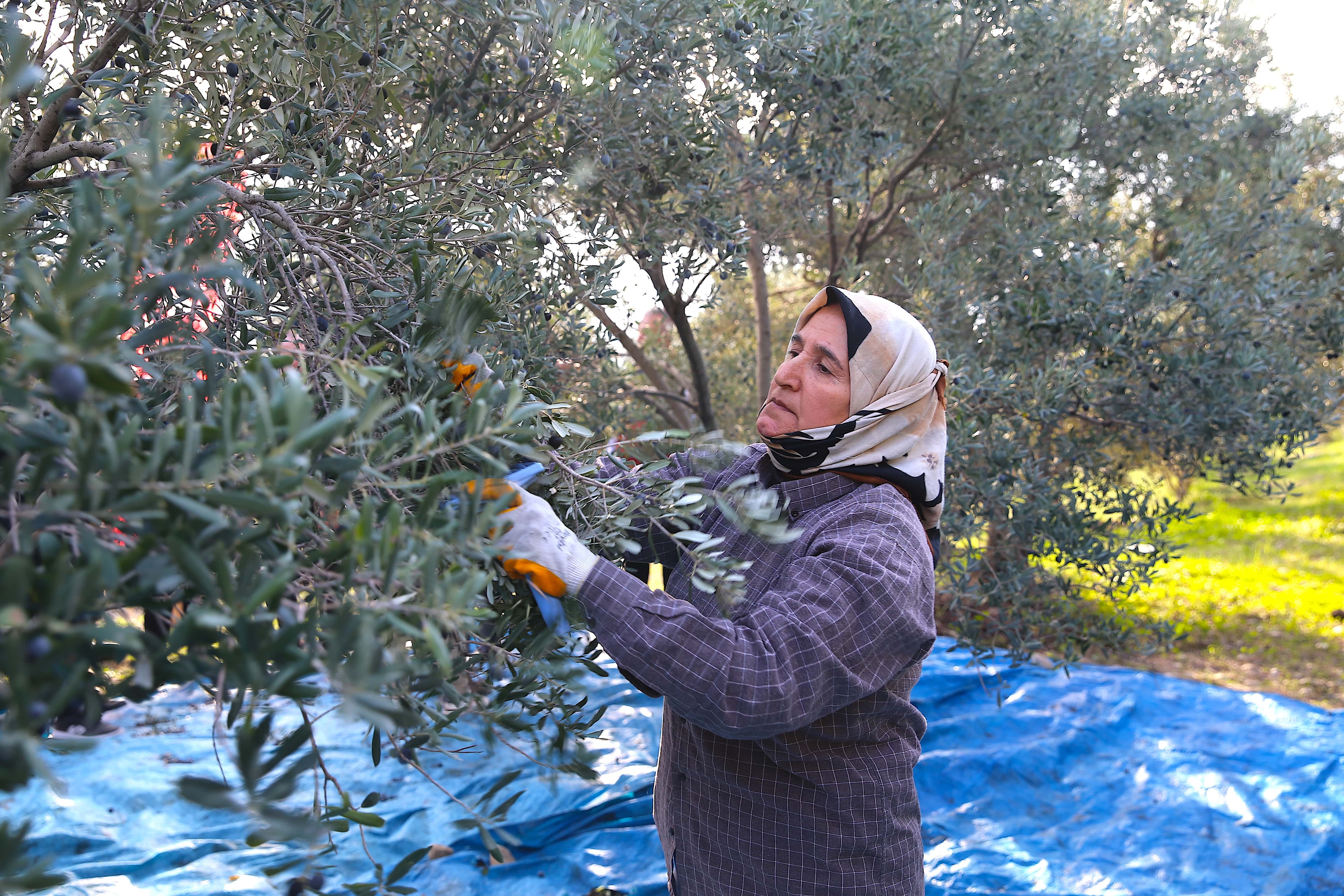 İşçilerle zeytin toplayan Masatlı, bahçe sahibine hasadın bereketli geçmesi temennisinde bulundu.