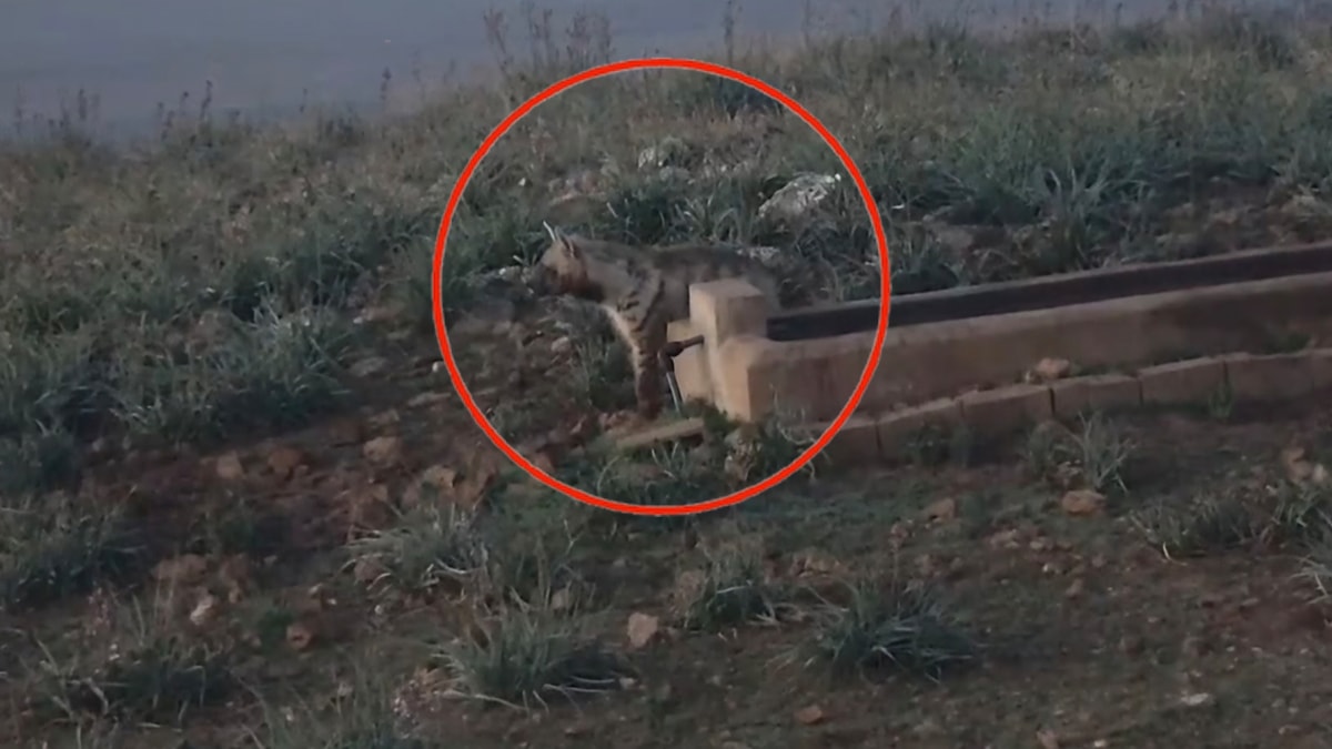 Kameralara yansıyan görüntülerde çizgili sırtlanın su içtiği görüldü.