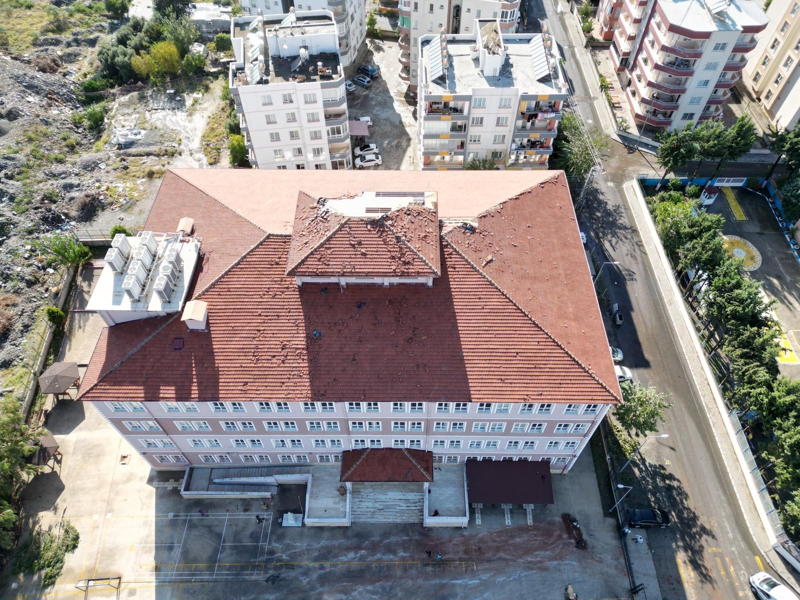 Belediye personeli çatı parçalarını kaldırmak için çalışma başlattı, polis ekipleri de bina çevrelerinde önlem aldı.