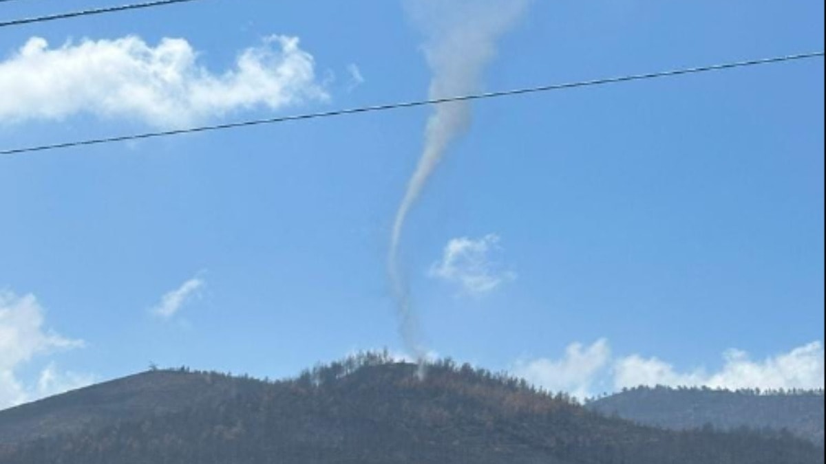 İlçeye bağlı Serinyol Mahallesi’nde geçen ay yanan ormanda hortum meydana geldi.