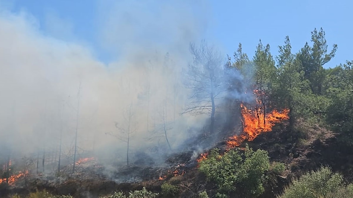 İhbar üzerine bölgeye Orman Bölge Müdürlüğü ekipleri ile 2 söndürme uçağı, 1 helikopter ve arazözler sevk edildi.