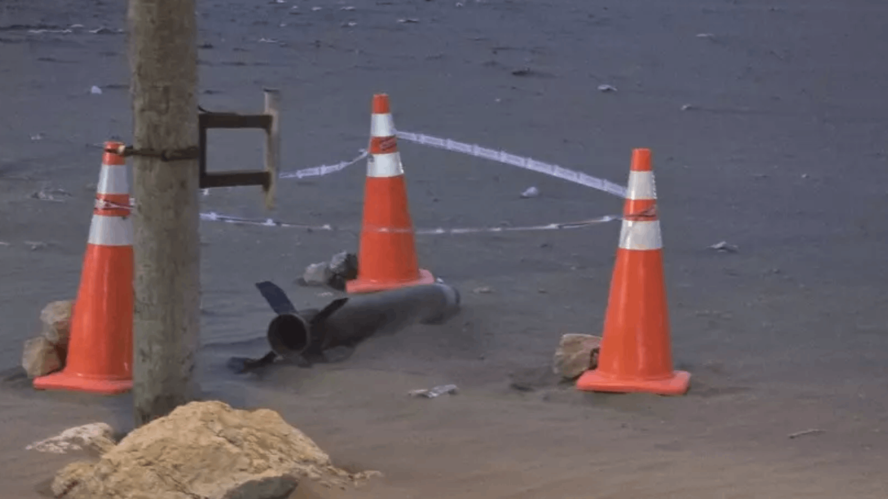 Dalgaların getirdiği düşünülen roket, ekipler tarafından güvenlik altına alındı.