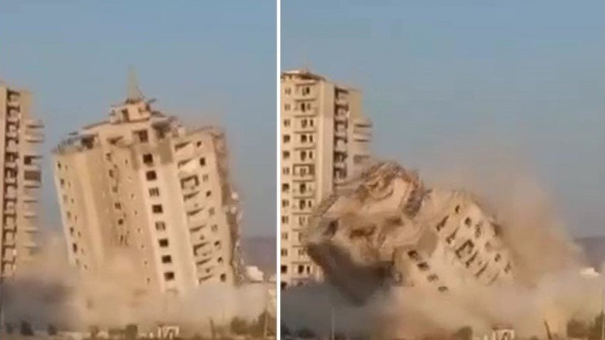 Hatay'ın Defne ilçesine bağlı Çekmece Mahallesi'nde 16 katlı rezidansın A blokunun ardından B bloku da dinamit kullanılarak yıkıldı.