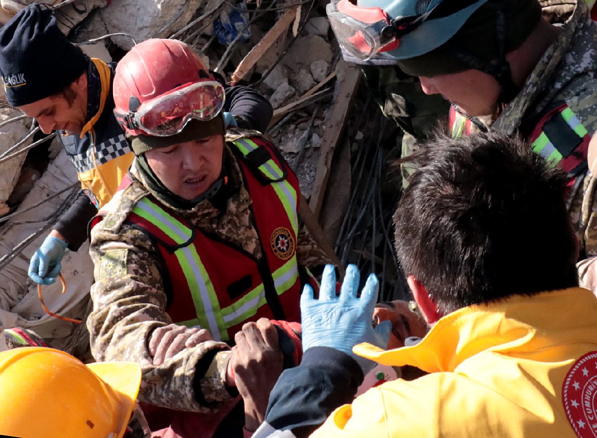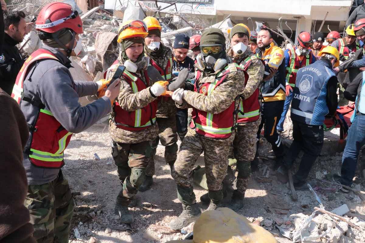 Kırgızistan'dan gelenlerin de arasında yer aldığı arama kurtarma ekiplerince gerçekleştirilen yoğun çalışmada, 3 kişinin canlı olduğu tespit edildi.