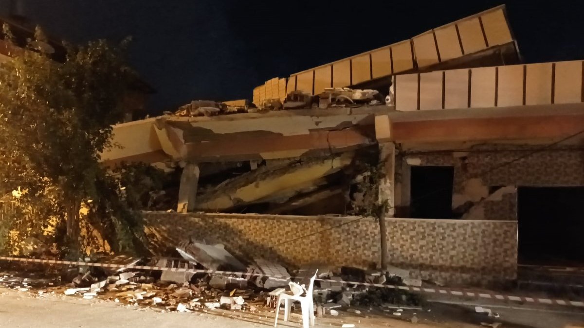 Hatay'da depremler nedeniyle ağır hasar alan bina çöktü