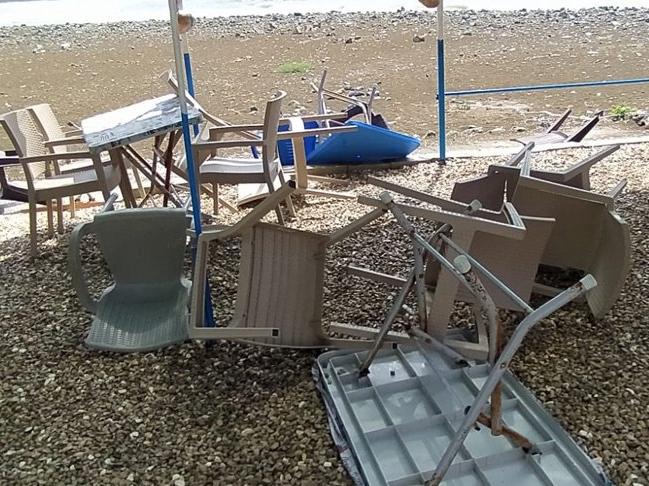 Hatay'ın Samandağ ilçesinde etkili olan yağışın ardından denizde oluşan hortum, sahil kenarındaki iş yerlerinde hasara neden oldu.