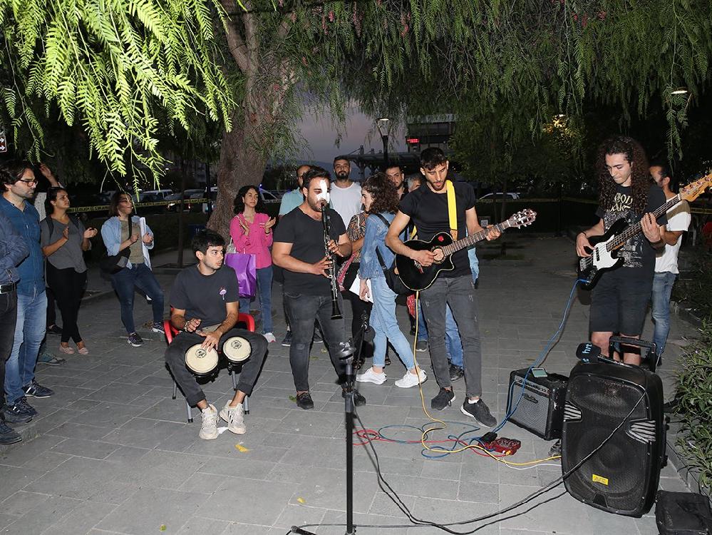 Grup adına konuşan müzisyen Yusuf Karagündüz, Ankara'da geçen hafta sanatçı Onur Şener'in öldürüldüğünü hatırlatarak, "Klarnet sanatçısı olarak ben de geçtiğimiz cumartesi günü istek şarkı yüzünden saldırıya uğradım. Bu olayların bir daha yaşanmaması için gelin birlik olalım." dedi.