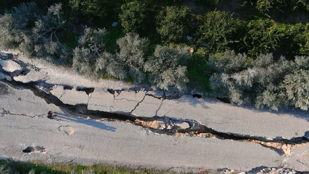 Dron ile de görüntülenen bölgelerde yollardaki uzun çatlak, kırık ve çökmelerle oluşan tahribat gözler önüne çıktı.