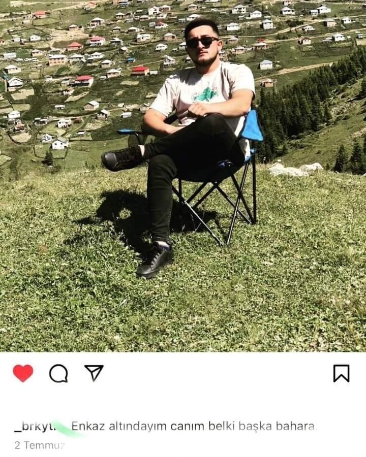 Olayda hayatını kaybeden ekskavatör operatörü Berkay Ten'in geçen 2 Temmuz günü sosyal medya hesabından yayınladığı fotoğrafının altına 'Enkaz altındayım canım belki başka bahara' yazılı not yazdığı görüldü. (AA-DHA)