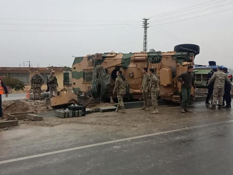 Edinilen bilgilere göre, Antakya-Reyhanlı yolu üzerinde 'kirpi' adı verilen askeri zırhlı araç, henüz bilinmeyen nedenle kontrolden çıkarak, orta refüje devrildi.