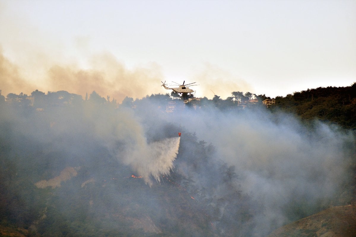 Hatay dün 14.00'ten bu yana yanıyor.İçişleri Bakanı Ali Yerlikaya ile Tarım ve Orman Bakanı İbrahim Yumaklı, gece yangın bölgesine giderek çalışmaları yerinde takip etti. Gece görüşlü heliktopterle devam eden hava müdahalesine günün aydınlanmasıyla uçaklar ve diğer helitopterler de dahil oldu.
