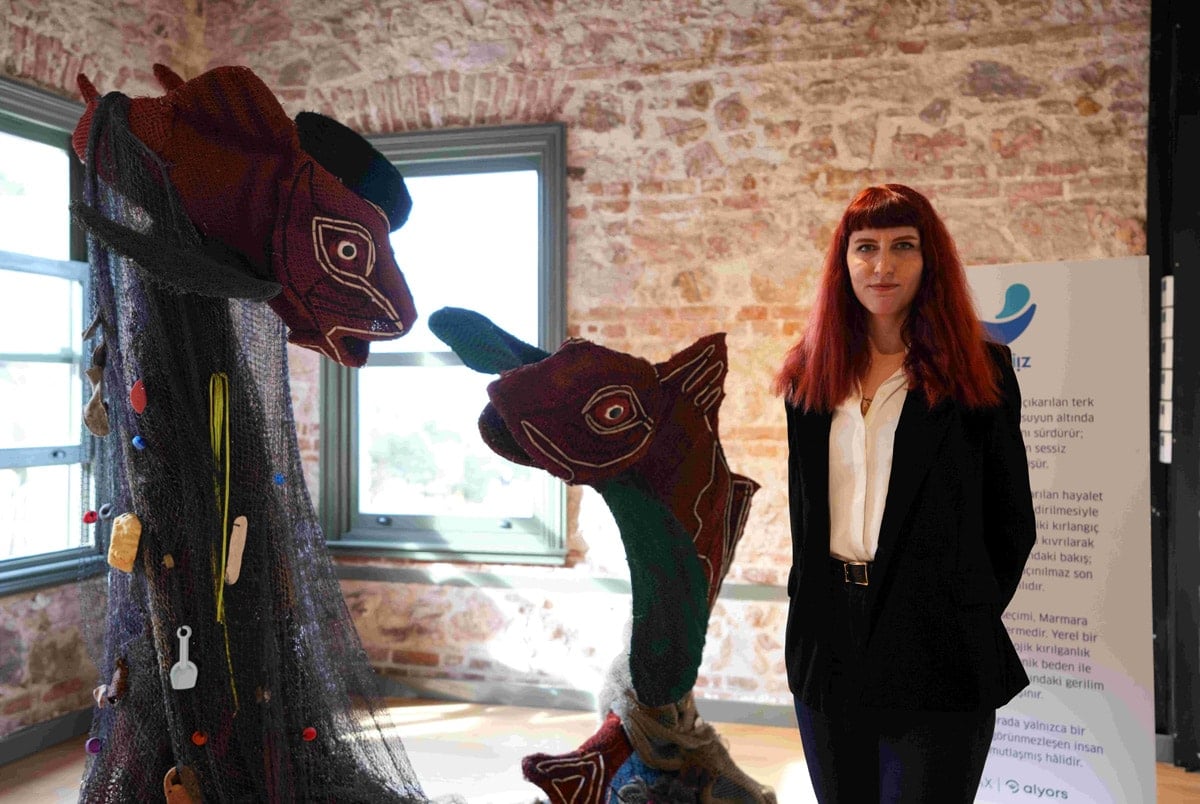‘Mavi İz’ projesi kapsamında hayalet ağ konusunda uzmanlaşan dalgıçlar Marmara Denizi’ne dalarak terk edilmiş ağları tek tek çıkardı... Bu ağlar da heykel sanatçısı Büşra Kölmük’ün ellerinde birer sanat eserine dönüştü. Tehlikeyi gözler önüne seren eserler ise Büyükada Taş Mektep’te sergilendi.