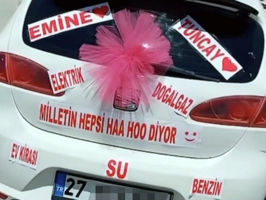 Hayat pahalılığını yansıtan gelin arabasının sosyal medyadaki fotoğrafına çok sayıda yorum yapıldı. Bir sosyal medya kullanıcısı “İzahı olmayan şeyin, mizahı olur” yorumuyla durmak bilmeyen zamlara tepkisini dile getirdi.