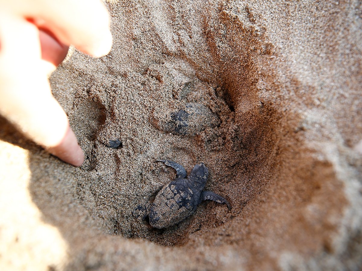 Caretta carettaların mayıstan itibaren kumun altına gömdüğü yumurtalardan yavrular çıkmaya başladı.