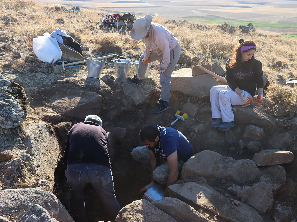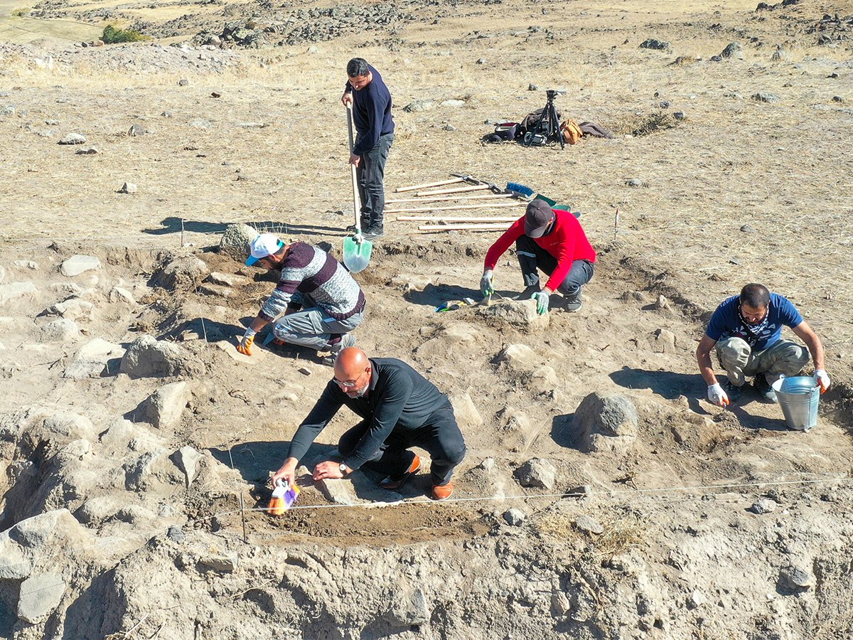 Muradiye ilçesine bağlı Uluşar Mahallesi'ndeki kayalık alana Urartu Kralı Menua tarafından inşa ettirilen kalede yapılan kazılarda önemli bulgulara ulaşıldı. Van Yüzüncü Yıl Üniversitesi Arkeoloji Bölümü öğretim üyesi Dr.  Sabahattin Erdoğan'ın bilimsel danışmanlığında iki ay önce başlatılan kurtarma kazısında, rizalitsiz (köşe çıkıntısız) ikinci tapınak, bindirme tekniği ile inşa edilmiş taş örgü oda mezar kalıntısı ile çanak çömlek parçaları ve metal eserler bulundu. Hava şartları nedeniyle bu yılki bölümü tamamlanan kazı çalışmalarının, gelecek yıl devam edeceği bildirildi. Erdoğan,kale kalıntısının bulunduğu alanda bölgenin tarihine ışık tutacak önemli bulgulara rastladıklarını söyledi. Buluntuların farklı dönemlerde kullanıldığını değerlendirdiklerini belirten Erdoğan, bir süre önce kazılar sonucu ortaya çıkarılan tapınağın tespit edildiği alanda ikinci tapınağın bulunmasının şaşırtıcı olduğunu aktardı. Kışın başlamasıyla kazılara ara verdiklerini anlatan Erdoğan, şöyle konuştu: "Kazılarda Kral Menua tarafından yapıldığını düşündüğümüz ikinci tapınağı gün yüzüne çıkardık. Hemen yanında önemli bir mezarla karşılaştık. Alanda çok sayıda Urartu seramiği çıkarıldı. Burası kazı çalışmaları açısından önemli bir yer. Orta Çağ dönemine ait seramikler var. Bu seramiklerin ikinci kez kullanıldığını görüyoruz." "Yine kalenin dışında çok önemli gördüğümüz bir nekropol bulunuyor. Burada çeşitli mezar türlerine rastladık. Bunlardan en önemlisi taş örgü mezarlar. Yine bölgeden bilinen taş örgü oda mezarlardan bir tanesini biz tespit ettik. Farklı olarak kapak taşı olmayan bir taş örgü mezardan söz ediyoruz. Bu anlamda bir yenilik olarak karşımıza çıkmakta. Buluntu çeşitliliğiyle de önemli bir mezar. Urartu dönemine ait çok sayıda seramikle birlikte çanak gömlek, metal eser var, ölü eşyası bulunuyor." (AA)