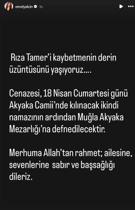 Rıza Tamer Şişman’ın cenazesinin, 18 Nisan Cumartesi günü Akyaka Camii’nde kılınacak ikindi namazının ardından Akyaka Mezarlığı’na defnedileceği öğrenildi.