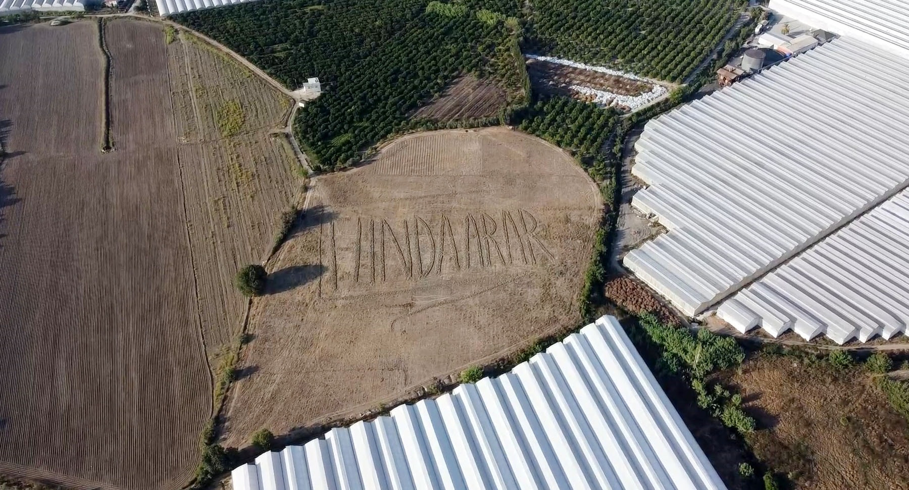 Funda Arar ile birkaç kez de fotoğraf çektiren Şahin, 10 Eylül'de 100 dönümlük tarlasının 30 dönümüne traktörle şarkıcının ismini yazdı.