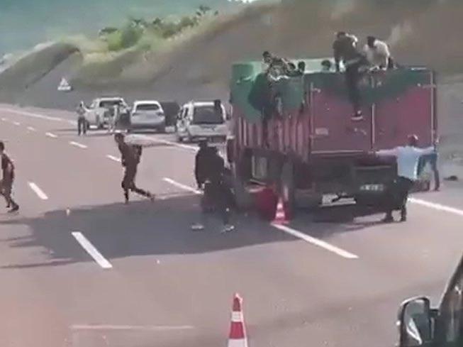 Yolcu otobüsü ve öğrenci servisinin önünde gelişen olayda çok sayıda göçmenin yoldan araziye kaçtıkları, jandarma tarafından kovalandıkları, kaçmaya çalışan bazılarının sivil giyimli kişiler tarafından şiddet gördüğü görüntülere yansıdı.
