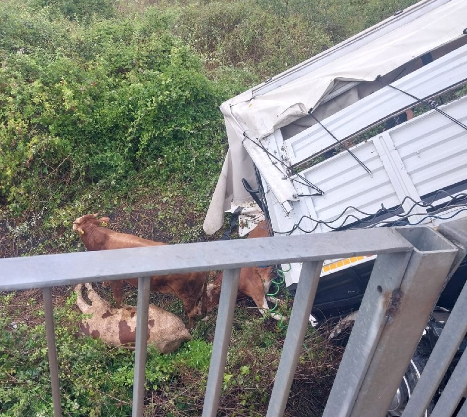 Sakarya'da gerçekleşen kaza, öğle saatlerinde TEM Otoyolu'nun Akyazı geçişinde meydana geldi. İstanbul istikametine giden Umut Oğurlu yönetimindeki 21 AFA 919 plakalı canlı büyükbaş yüklü TIR, sürücüsünün kontrolünden çıktı.
