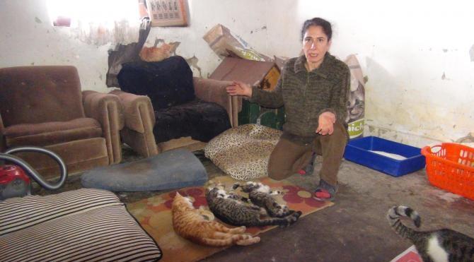 "Telef olmasınlar diye onları evime götürüp bakmaya çalışıyorum. Sağlık sorunları varsa, veteriner kliniğine götürüp tedavilerini sağlıyorum. Bütün bunları evlere temizliğe giderek kazandığım para ile yapıyorum. Hayvan sevgisi olmayan, hayvanlara karşı duyarsız insanlar, bu soğuk havalarda beslenmelerine ve barınmalarına yardımcı olacakları yerde, `Bahçeme girdi` diye zehirleyerek öldürüyor, ya da taş ve sopalarla kovalayıp, yaralanmalarına neden oluyor. İki gün önce 3 kedimi zehirleyerek öldürdüler, 3 kedim de ayakları kırılmış vaziyette veteriner kliğininde tedavi görüyor."