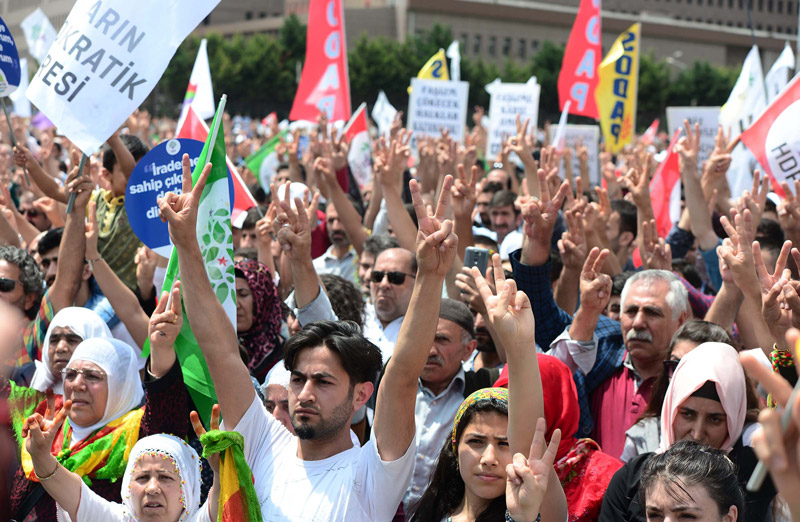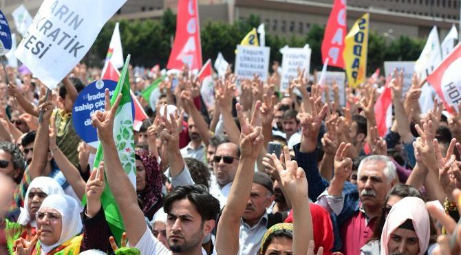 Demirtaş, "Bir insanın üniversite diploması olması onu daha değerli yapmaz. Ancak, bir kişinin Cumhurbaşkanı seçilebilmesi için üniversite diploması gerekiyor. Biz senin Cumhurbaşkanı olmak için 'ehliyetin var mı yok mu?' onu merak ediyoruz" diye konuştu. Demirtaş, Diyarbakır mitingine katılmak için alandan erken ayrılırken, miting çeşitli grupların verdiği konserlerle devam ediyor. (DHA)