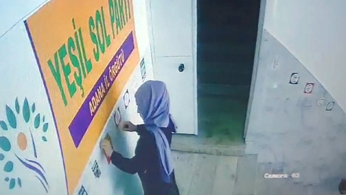 Adana'da HDP İl Binası önüne 3 şişe ispirto ve defter bırakan A.C. (26) isimli kadın, polis ekiplerince gözaltına alındı.