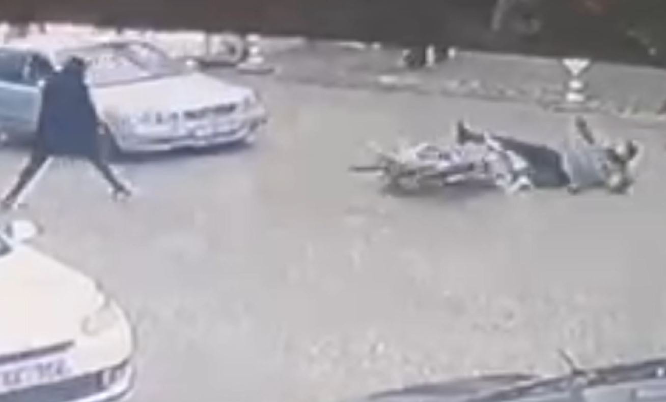 Güvenlik kamerası görüntülerine yansıyan kaza sonrasında ihbar üzerine olay yerine çağrılan sağlık ekiplerince M.Ş., hastaneye kaldırıldı. Hastanedeki tedavisi tamamlanan M.Ş., polis merkezine götürüldü.