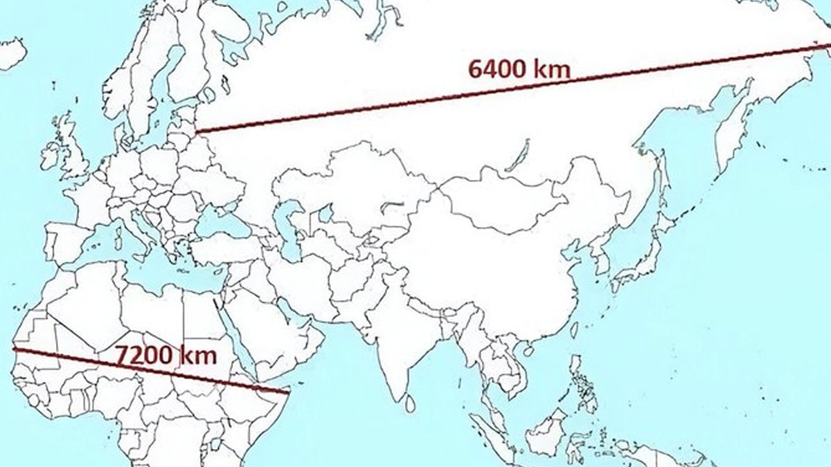 Haritada Afrika kıtası üzerinde çizilen 7200 kilometrelik çizgi, Avrupa'dan Asya'ya uzanan 6400 kilometrelik çizgiden daha uzun görünüyor. Ancak gerçek dünya yüzeyinde bu kıyaslama çok daha farklı...