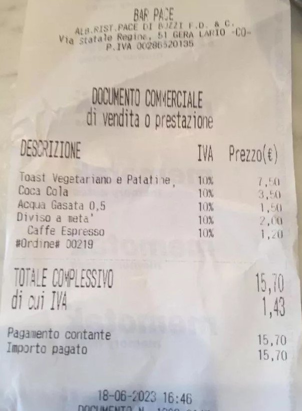 İtalya'nın Como Gölü'ne tatile giden bir turist, eşiyle paylaşmak üzere vejetaryen sandviçini ikiye böldürdü. Hesap geldiğinde ise şoke oldu; çünkü lüks bar, sandviçleri ikiye bölmek için de ücret almıştı. Turist, sandviçi iki kişi arasında servis etmek için 1,72 sterlin eklenen faturanın bir fotoğrafını sosyal medyada da paylaştı.