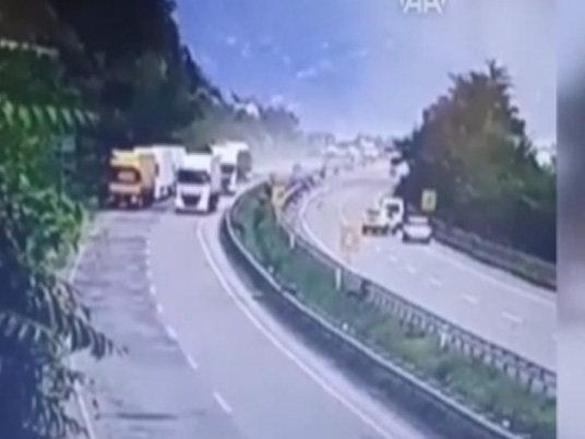 3 ay aradan sonra bugün aynı yerde dağdan kopan taş ve toprak kütleleri sahil kenarında bekleyen TIR’ların üzerine devrildi. Heyelanda bir tır zarar görürken, korku dolu anlar güvenlik kamerasına yansıdı. Heyelan nedeniyle karayolu ulaşıma kapanırken, karayolları ekiplerinin çalışmasının ardından karayolu kontrollü olarak ulaşıma açıldı.