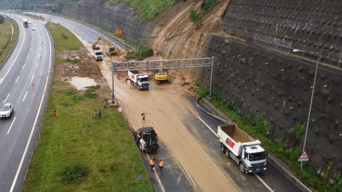 Sabahın ilk ışıklarından itibaren iş makineleriyle yola kayan toprak ve kaya parçalarını kaldıran ekipler, saatler süren çalışma sonucu otoyolu araç geçişine güvenli hale getirdi.