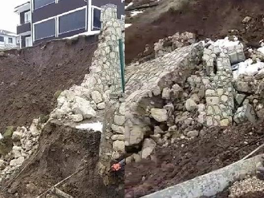 Sakarya'nın Akyazı ilçesinde kar sularının erimeye başlamasıyla birlikte heyelan meydana geldi. Heyelan neticesinde ulaşım sağlanan yol yıkılırken, bir otobüs durağı da toprak altında kaldı.