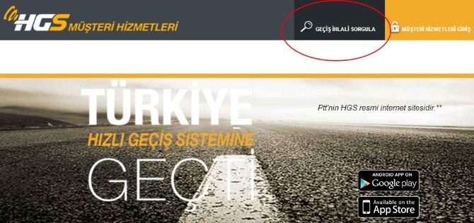 Bu ekranda kırmızı çerçeve ile işaretlenen bağlantıya tıklandığında HGS ceza sorgulama yapılabilen ekran açılır. HGS blogunda yer alan HGS ceza sorgulama yazısında da aynı bağlantıdan yararlanılacağı ifade edilir. Kişiler bağlantıya tıkladıktan sonra aşağıdaki resimde görüne ekran açılır.