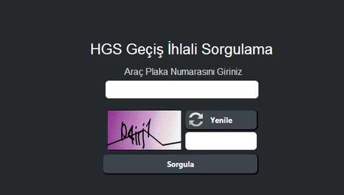 HGS ceza sorgulama için ilgili ekran sayfasına giriş şöyledir;