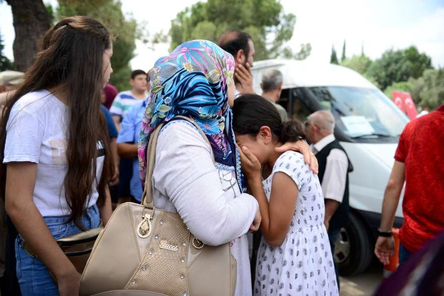 Bu sırada bayram nedeniyle yakınının mezarını ziyarete gelen küçük bir kızın gözyaşlarına boğulduğu görüldü. Kız çocuğunun annesi, "Hiç tanımıyoruz, akrabamız değil ama çok üzüldük. Bayram günü şehit olmuş" dedi.