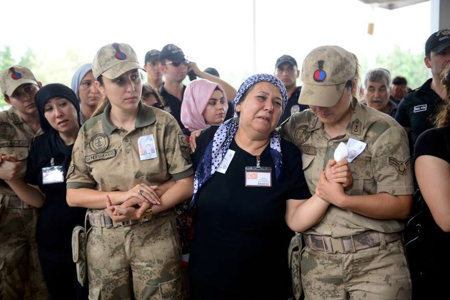 Şehit Jandarma Uzman Onbaşı Eren Yücel'in annesi Sevtap YücelBu arada şehidin erkek kardeşi Emre Yücel'in gözyaşlarına boğulduğu görüldü. Çelik'in konuşmasının ardından şehidin Türk bayrağına sarılı tabutu, silah arkadaşlarının omuzlarında tekrar cenaze aracına götürüldü.
