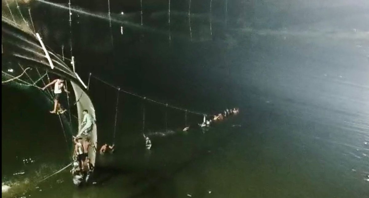 Gujarat eyaleti bakanı Brijesh Merja yaptığı açıklamada, olayda, köprüdeki yüzlerce kişinin Macchu Nehri'ne düştüğünü söyledi.