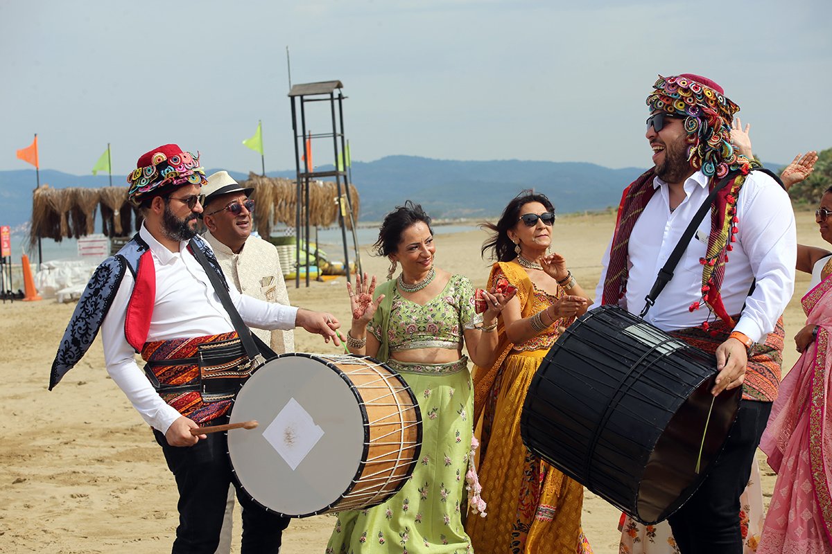 Plaja kurulan platforma çıkan damat, gelinin gelmesini bekledi. Gelinin bir yakını tarafından platforma getirilmesinin ardından dini nikah kıyıldı.