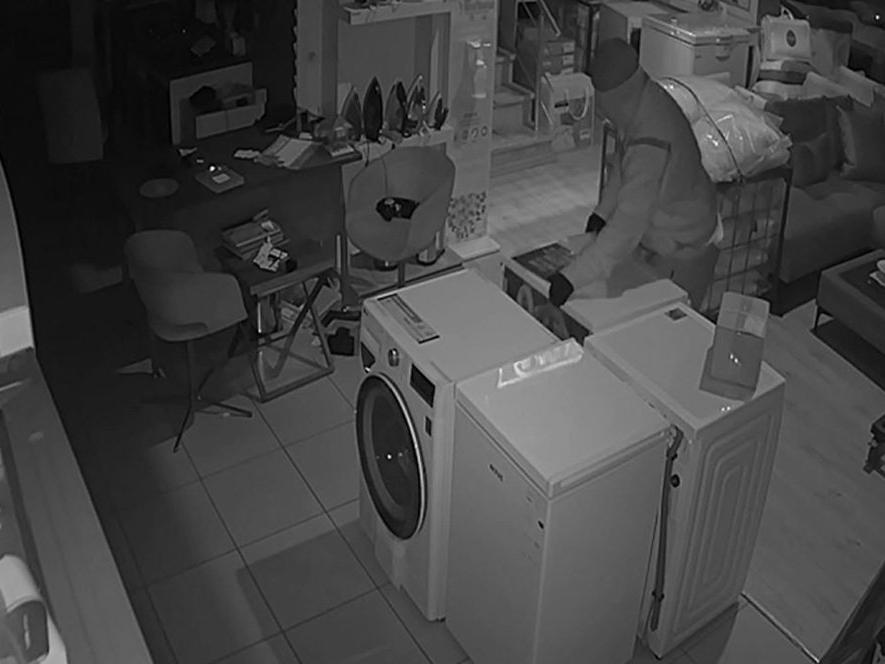 * Birinci seferinde mağazanın kapısını kırıyor. Üçüncü sefer de malları alıyor.