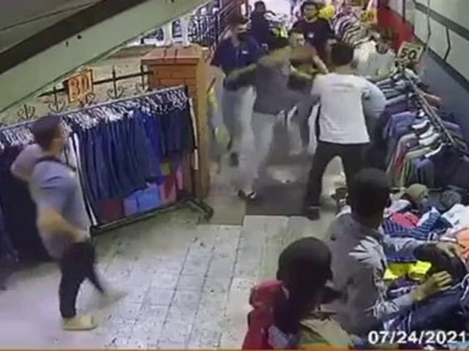 Görüntülerde elinde poşetle yürüyen hırsızın arkasından gelen mahallelinin hırsızı yakaladığı ve dövmeye başladığı görülüyor. Darp edilen hırsızın elinde bulunan poşette bulunan büyük bir bıçak da yere düşüyor.