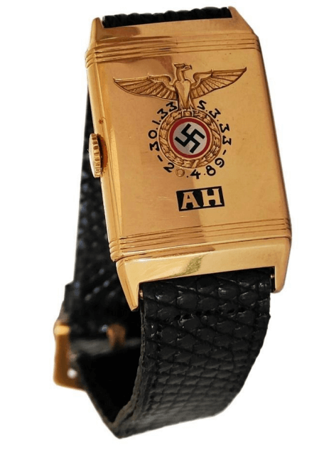 İsviçreli lüks saat üreticisi LeCoultre tarafından üretilen saatin üzerinde Nazi liderinin baş harfleri, Swastika ve Alman imparatorluk kartalı yer alıyor. Aynı zamanda üç tarih yazıyor: Hitler'in doğum günü, Almanya şansölyesi olarak atandığı tarih ve Nazi partisinin 1933 seçim zaferinin tarihi.