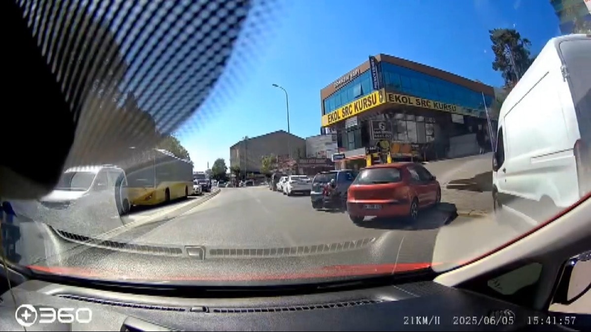 Daha sonra otomobiline binen sürücü olay yerinden ayrılırken motosiklet sürücüsü hafif şekilde yaralandı. O anlar başka bir sürücünün araç içi kamerasına yansıdı.