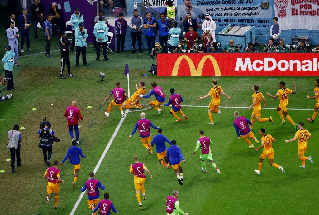 1986 yılından bu yana Dünya Kupası'na hasret olan Arjantin 35'te Molina ve 73'te penaltıdan Messi'nin golleriyle 2-0'lık büyük bir avantaj elde etti. Ancak sahneye Beşiktaşlı forvet Wout Weghorst çıktı. 78. dakikada Depay'ın yerine oyuna giren Weghorst, takımının ilk isabetli şutunda 83. dakikada kafa vuruşuyla skoru 2-1'e getirdi. Duraklama dakikalarında gerilen oyunda Hollanda 90+10'da tehlikeli yerden kazandığı serbest vuruşu pasla kullandı ve Weghorst 90+11'de skoru 2-2'ye getirip maçı uzatmalara götürdü.